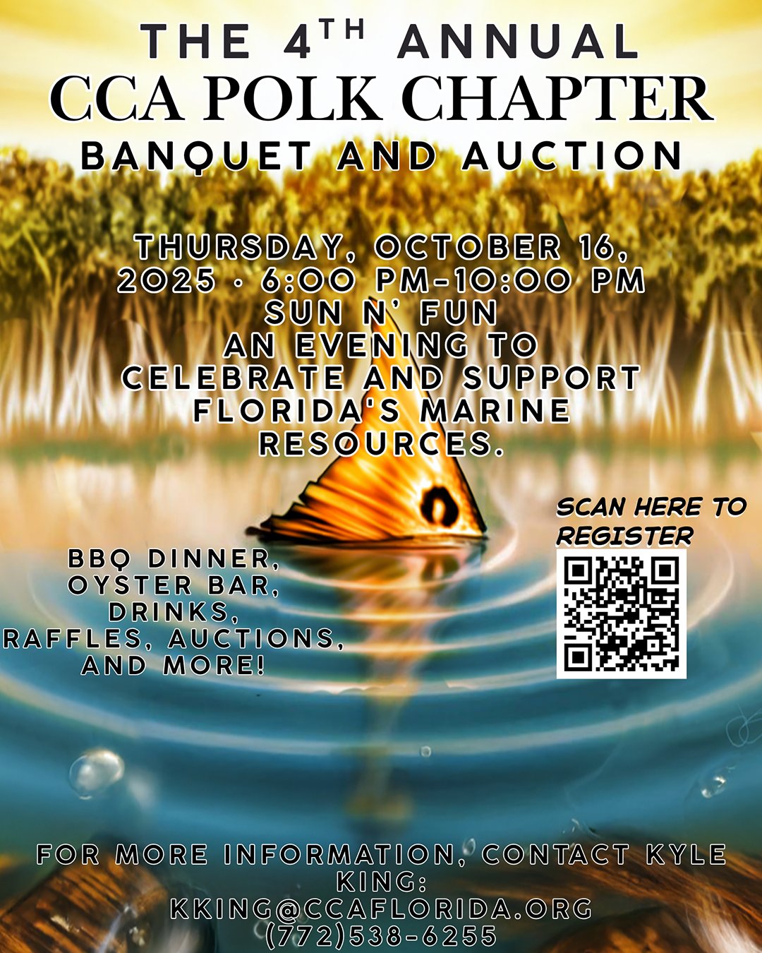 The party is on 10/16/25 at Sun n Fun campus! There will be an open bar, catered bbq dinner, raffles, auctions, and more.