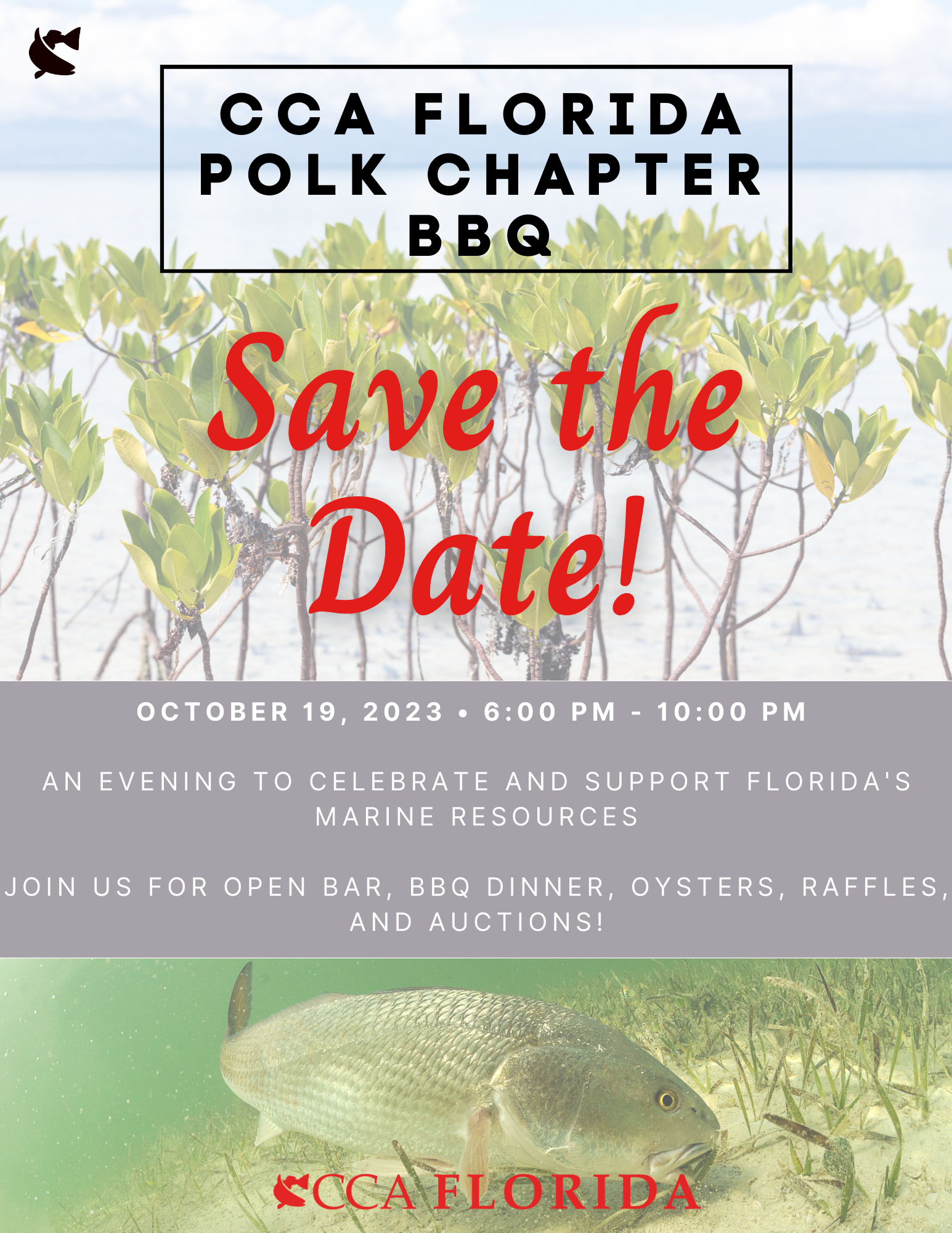 You are invited to the CCA Polk County Chapter BBQ. The party is on Thursday, October 19 at Sun n Fun campus! There will be an open bar, oysters, catered bbq dinner, raffles, auctions and more! This event is in addition to our annual Spring banquet.
