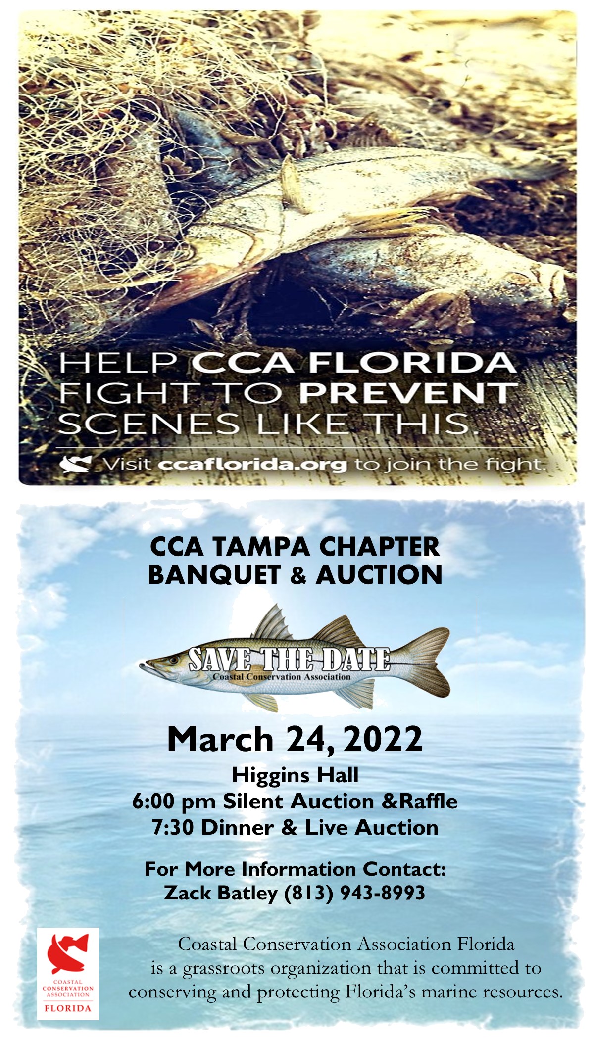 We have a NEW VENUE and REDUCED PRICING! Steak dinner, open bar, and live and silent auctions at the 35th annual Tampa Chapter Banquet at Higgins Hall with special guest Captain Mike Anderson!